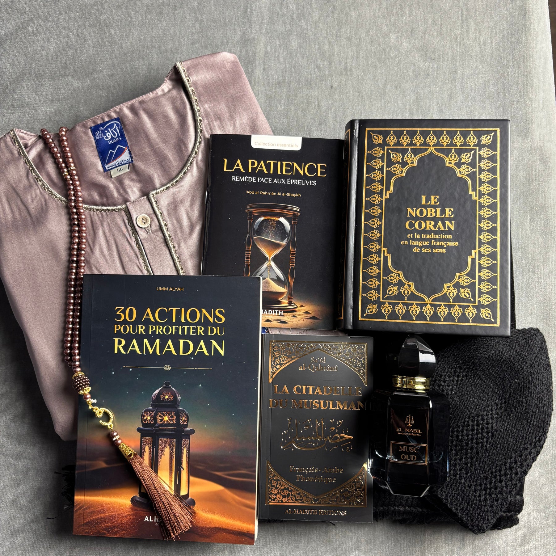 Un coffret noble et complet, pensé spécialement pour l’homme musulman qui souhaite vivre un Ramadan organisé, utile et spirituel.